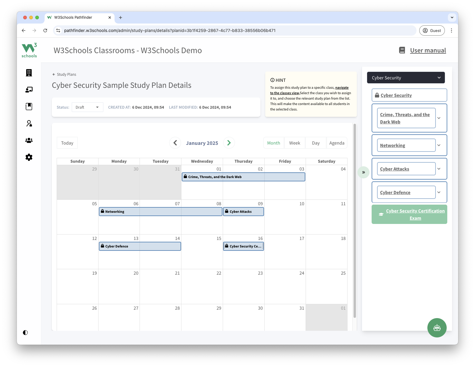 Save time with pre-built teacher materials and study plans. Easily organize your class with a timeline from the introduction of Cyber Security to the final exam.