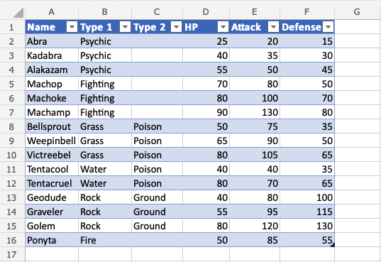 Convert the range into a table.