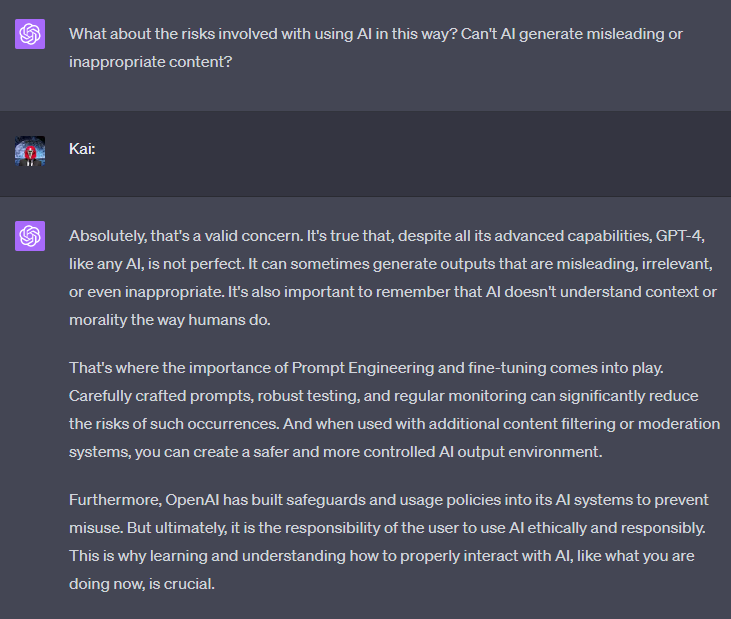 A conversation between Kai, the author of a GPT-4 tutorial, and a student: