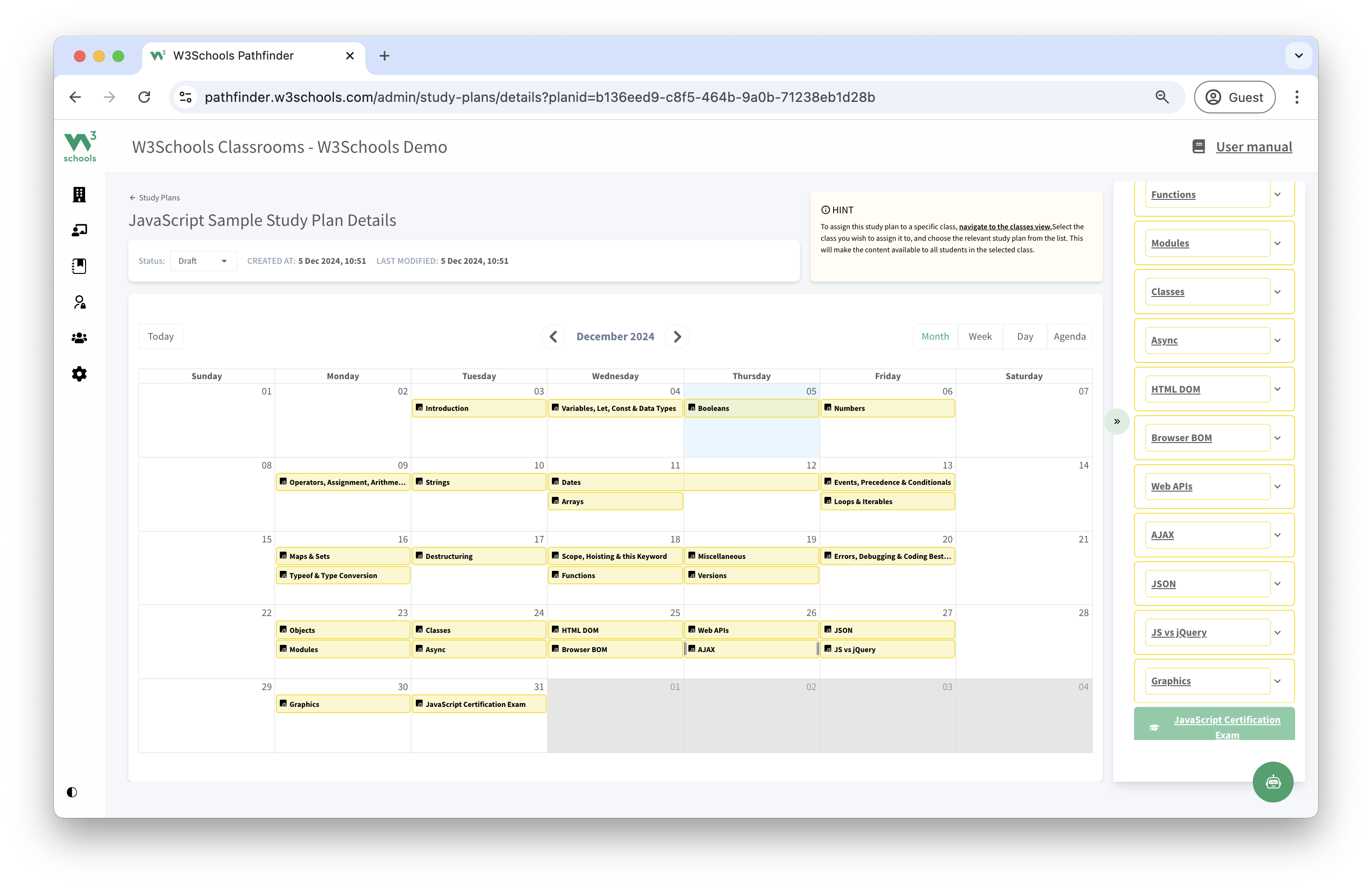 The JavaScript study plan helps you teach your students JavaScript step-by-step.
