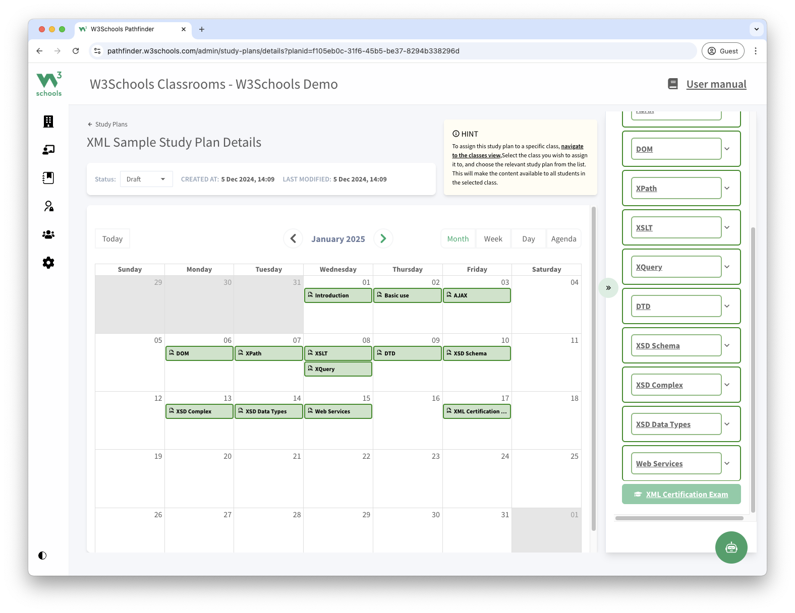 Save time with pre-built teacher materials and study plans. Easily organize your class with a timeline from the introduction of XML to the final exam.